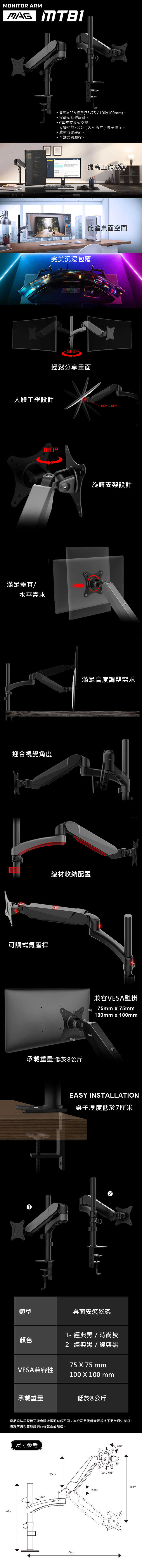 ● C型夾夾桌式支架,支援小於7公分(2.76英寸)桌子厚度