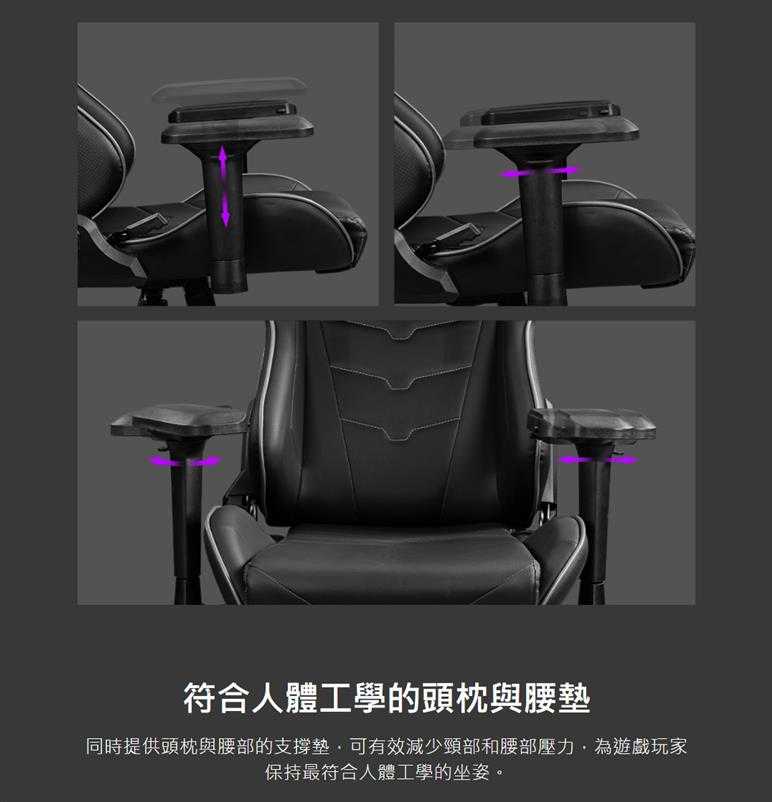 同時提供頭枕與腰部的支撐墊,可有效減少頸部和腰部壓力,為遊戲玩家保持最符合人體工學的坐姿。