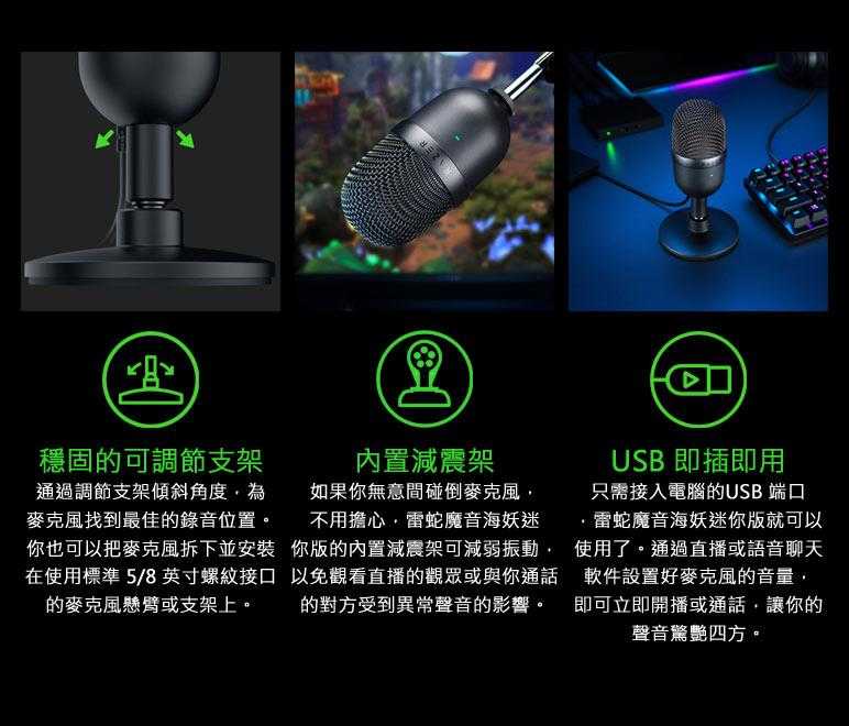 Razer 雷蛇 Seiren Mini 魔音海妖 麥克風 黑 {{specImage.SkuName}}