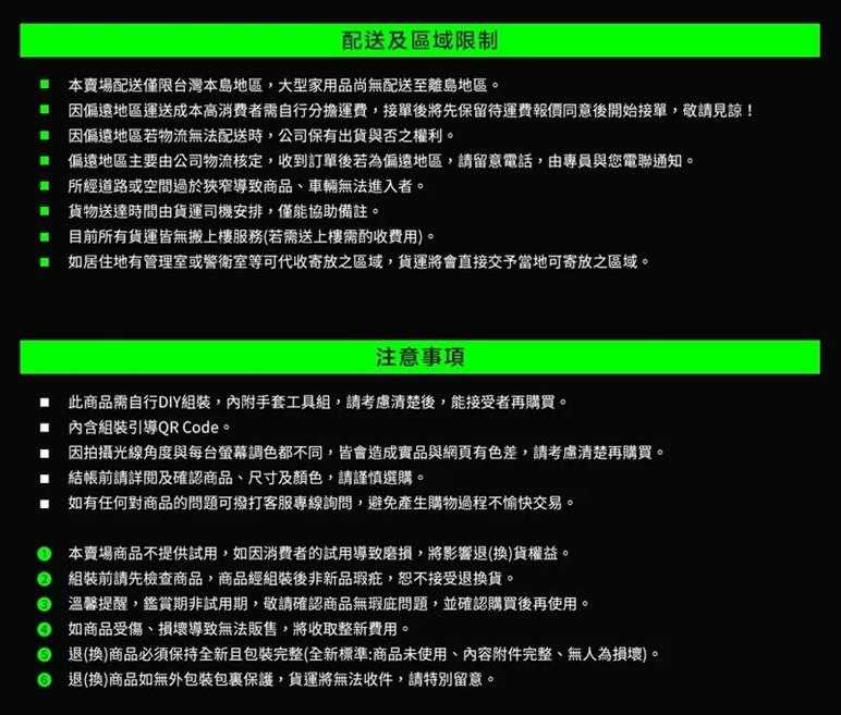 2. 組裝前請先檢查商品,商品經組裝後非新品瑕疪,恕不接受退換貨