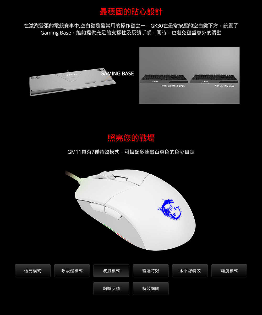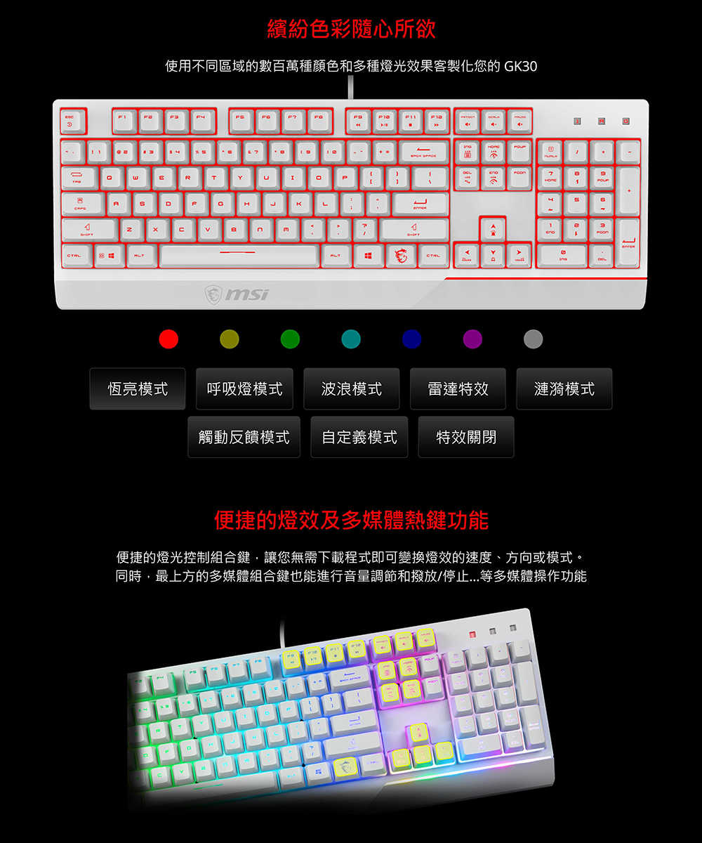 ●7種特效模式,可搭配多達數百萬色的色彩自定