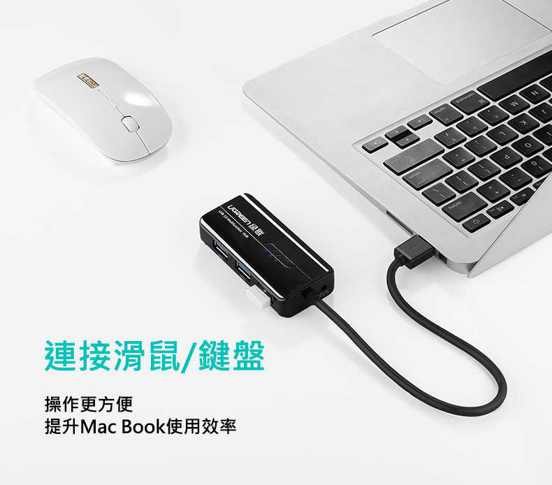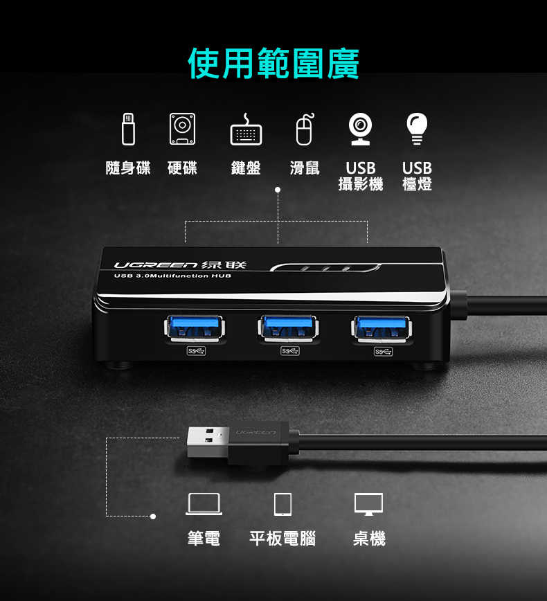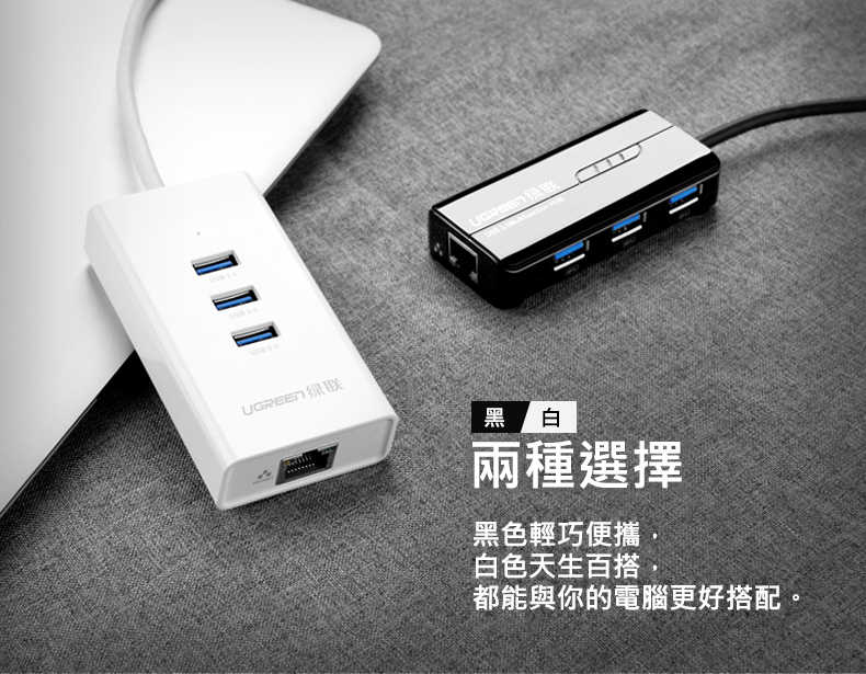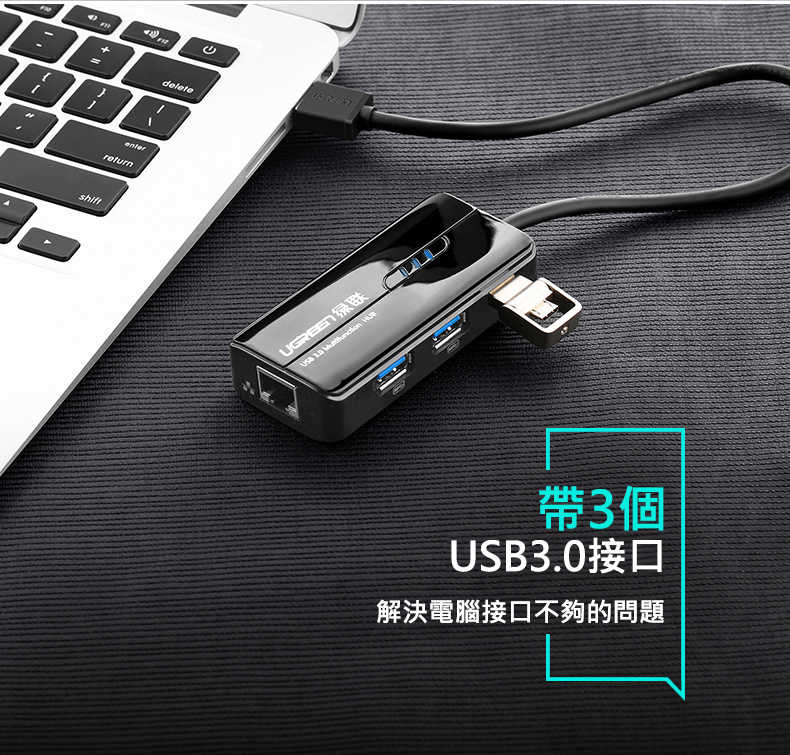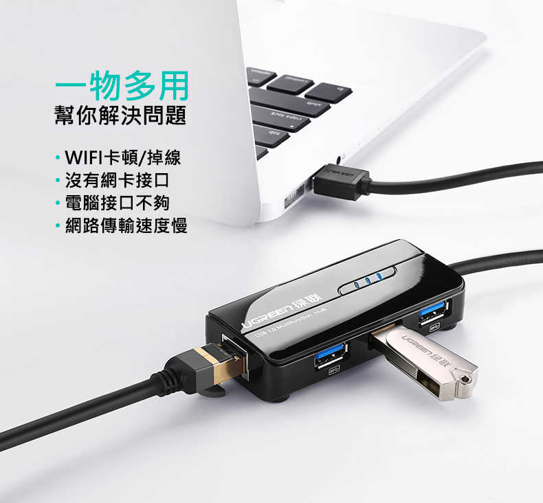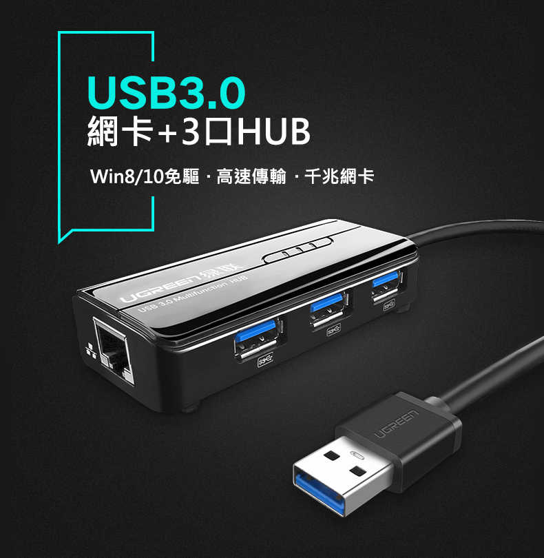UGREEN綠聯 3 Port USB3.0集線器+GigaLAN網路卡