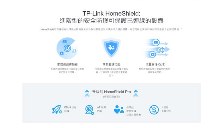△HomeShield 包含免費的基本方案,可付費升級成進階方案。可至 https://www.tp-link.com/homeshield 查看更多資訊