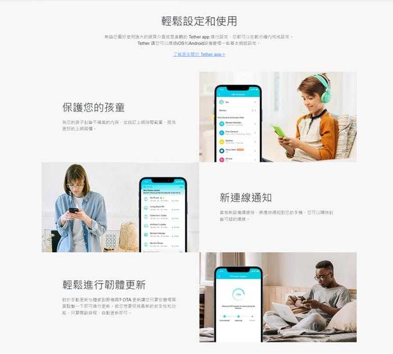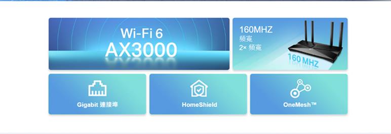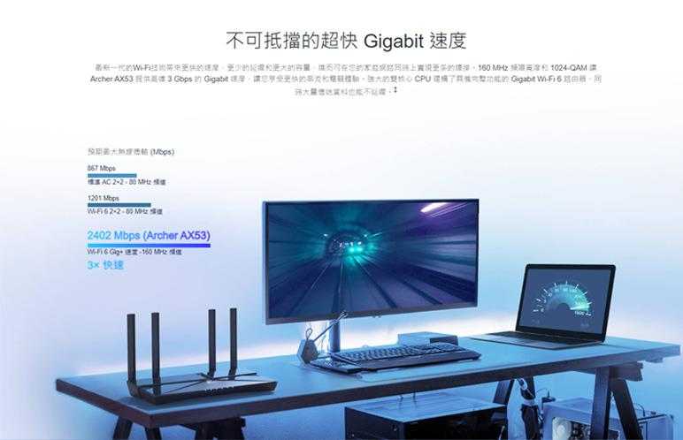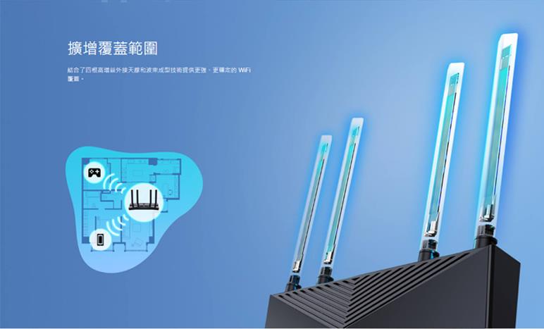†最大無線訊號為符合標準IEEE 802.11的理論速率,覆蓋範圍和最大連線數量為在實驗室測試數據,實際無線訊號吞吐量、無線訊號覆蓋範圍和連線數量皆無法保證且實際情況會依 1) 環境因素,包含建築物材質、實體物件和障礙物; 2) 網路條件,包含現場干擾、網路密度、產品位置、網路複雜度;3) 客戶端限制,包含速率表現、位置、連線品質和客戶端條件。