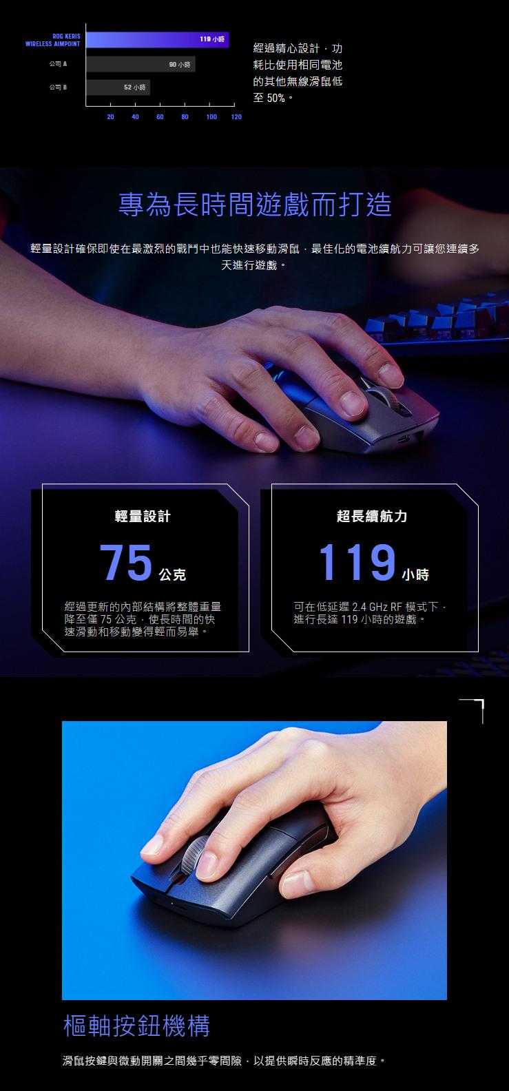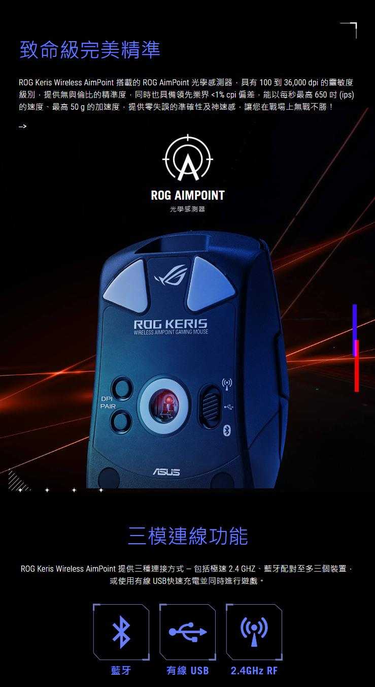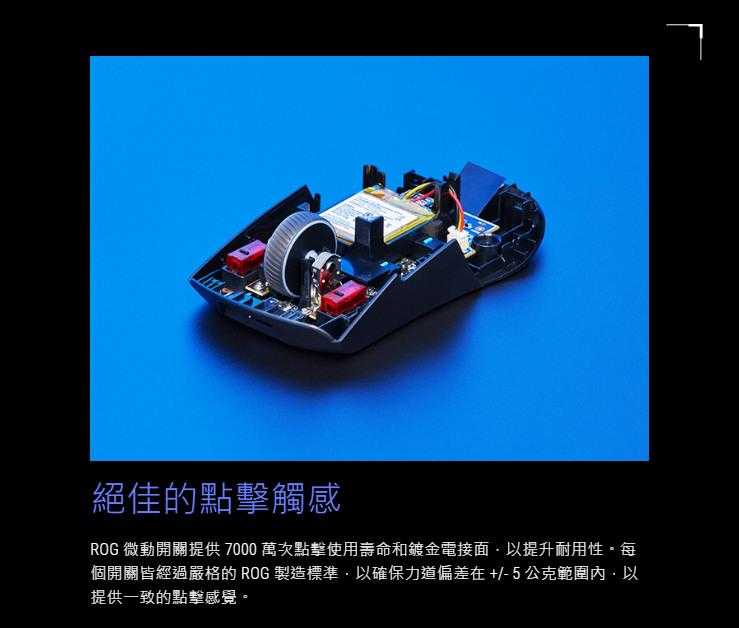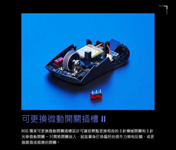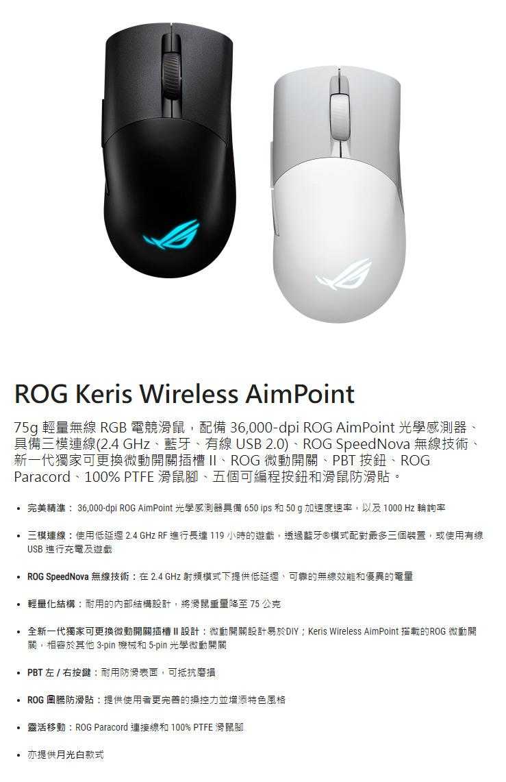 ●Keris Wireless AimPoint 搭載的ROG 微動開關,相容於其他 3-pin 機械和 5-pin 光學微動開關