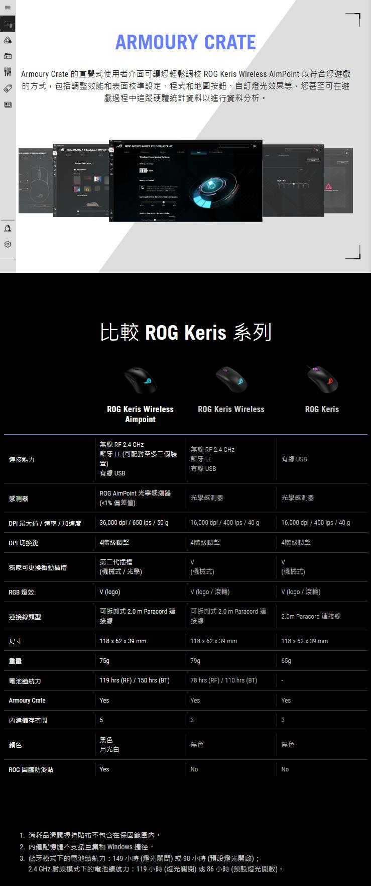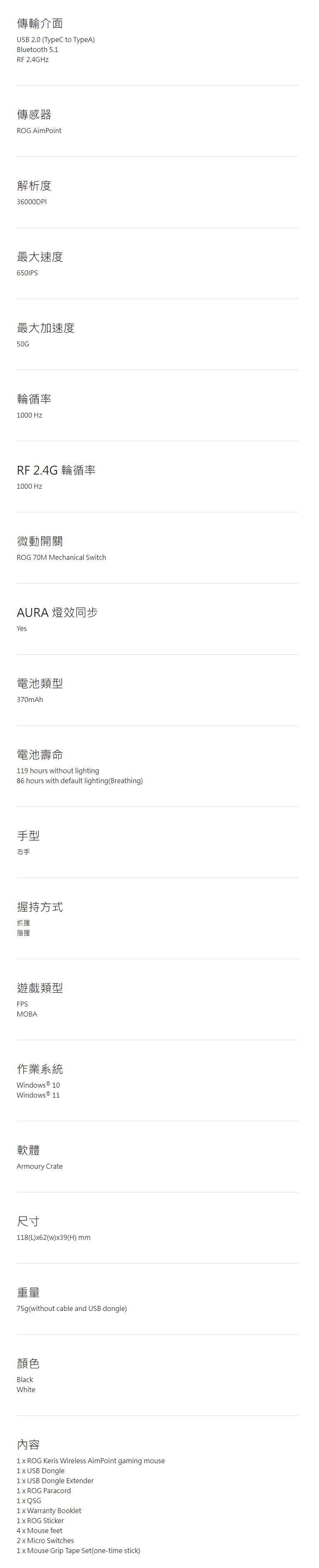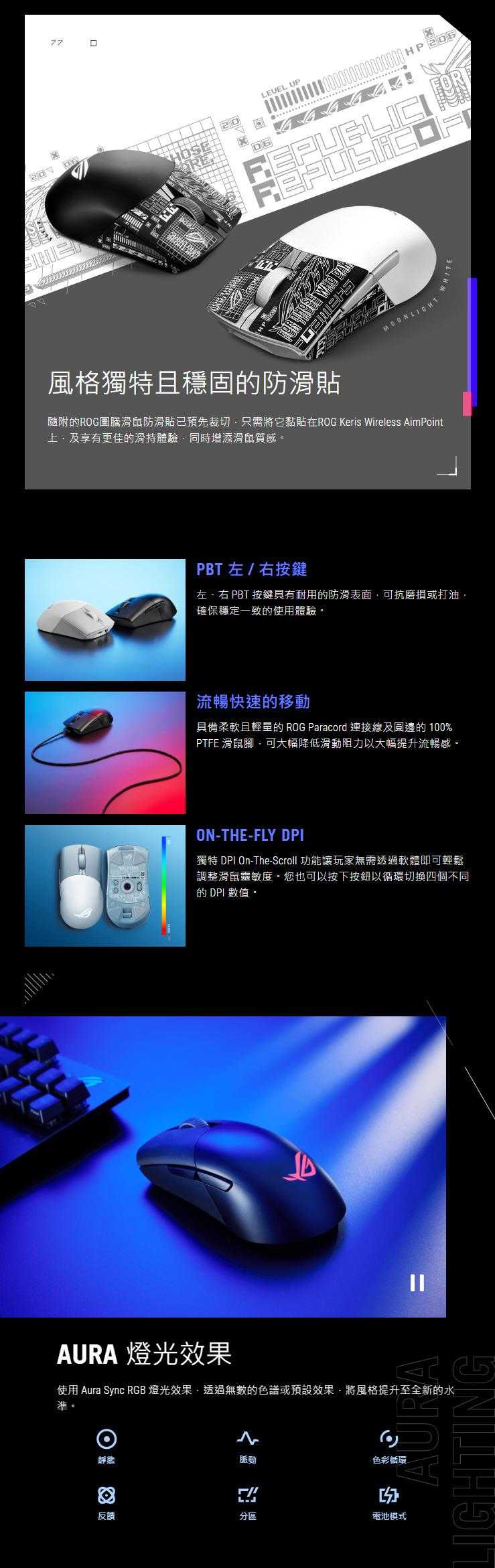 ●Keris Wireless AimPoint 搭載的ROG 微動開關,相容於其他 3-pin 機械和 5-pin 光學微動開關