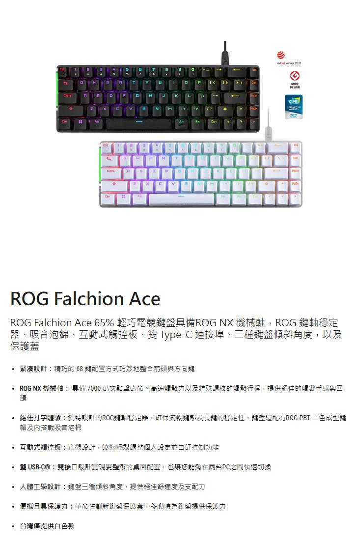 ASUS 華碩 ROG Falchion Ace NX 機械電競鍵盤 白 青軸