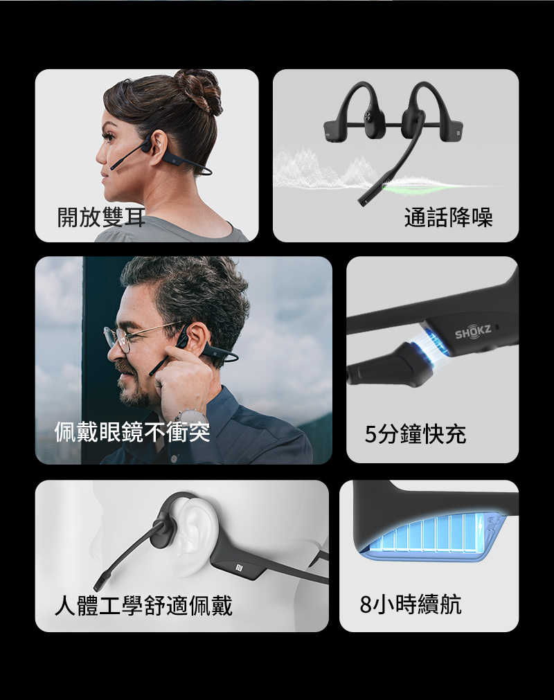 Shokz OpenComm C102 骨傳導藍牙通訊耳機 曜石黑 {{specImage.SkuName}}