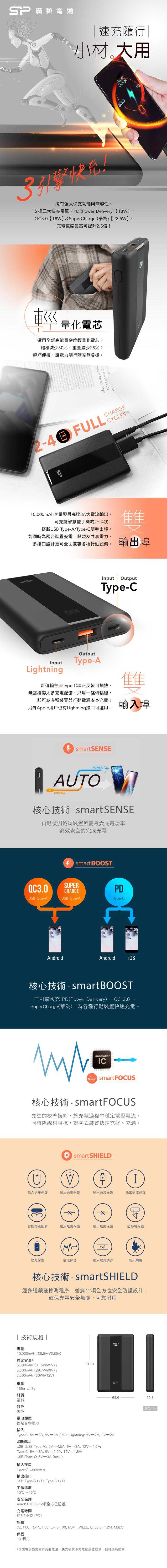 Silicon Powe 廣穎 QP55 10000mAh 22.5W快充 行動電源 黑色