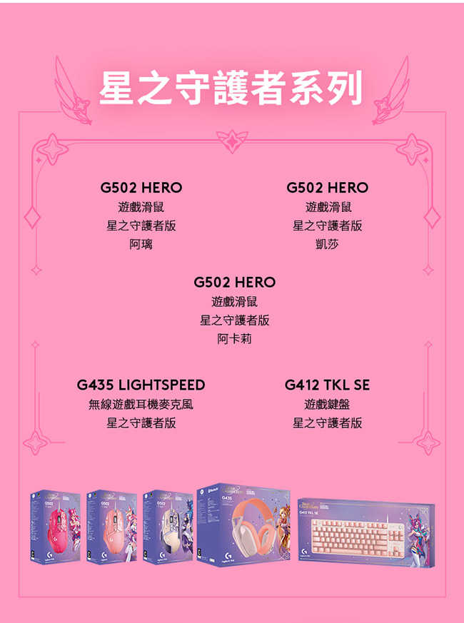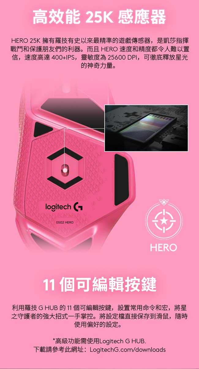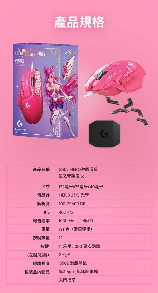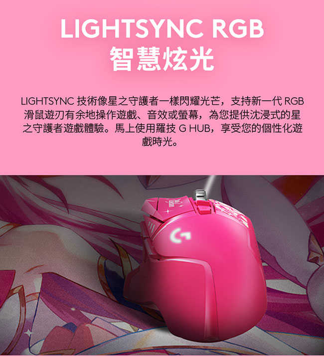 Logitech 羅技 G502 Hero遊戲滑鼠 星光戰士版-凱莎 {{specImage.SkuName}}
