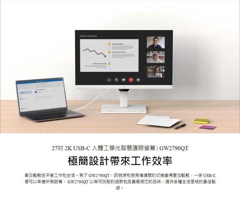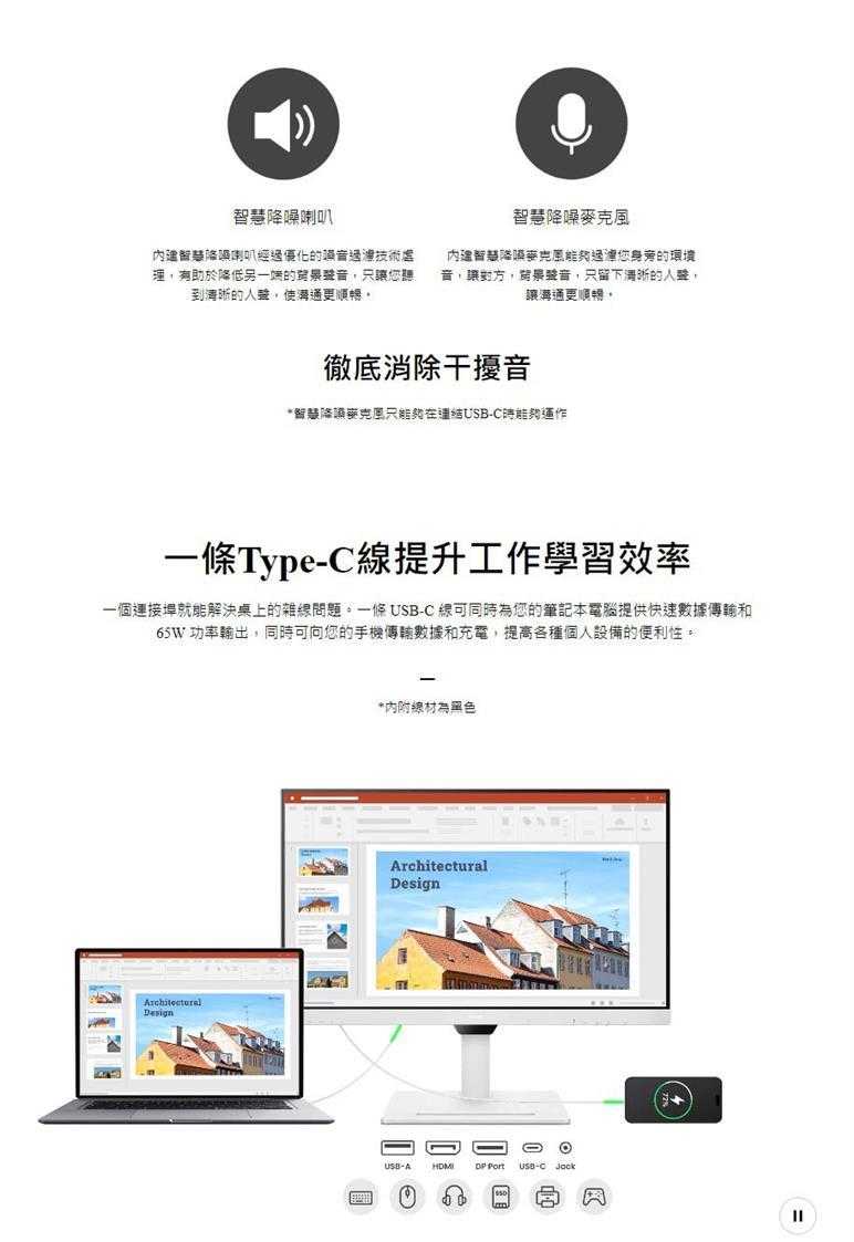●支援USB-C且提供65W充電,all in one 簡化使用者桌面線材的空間
