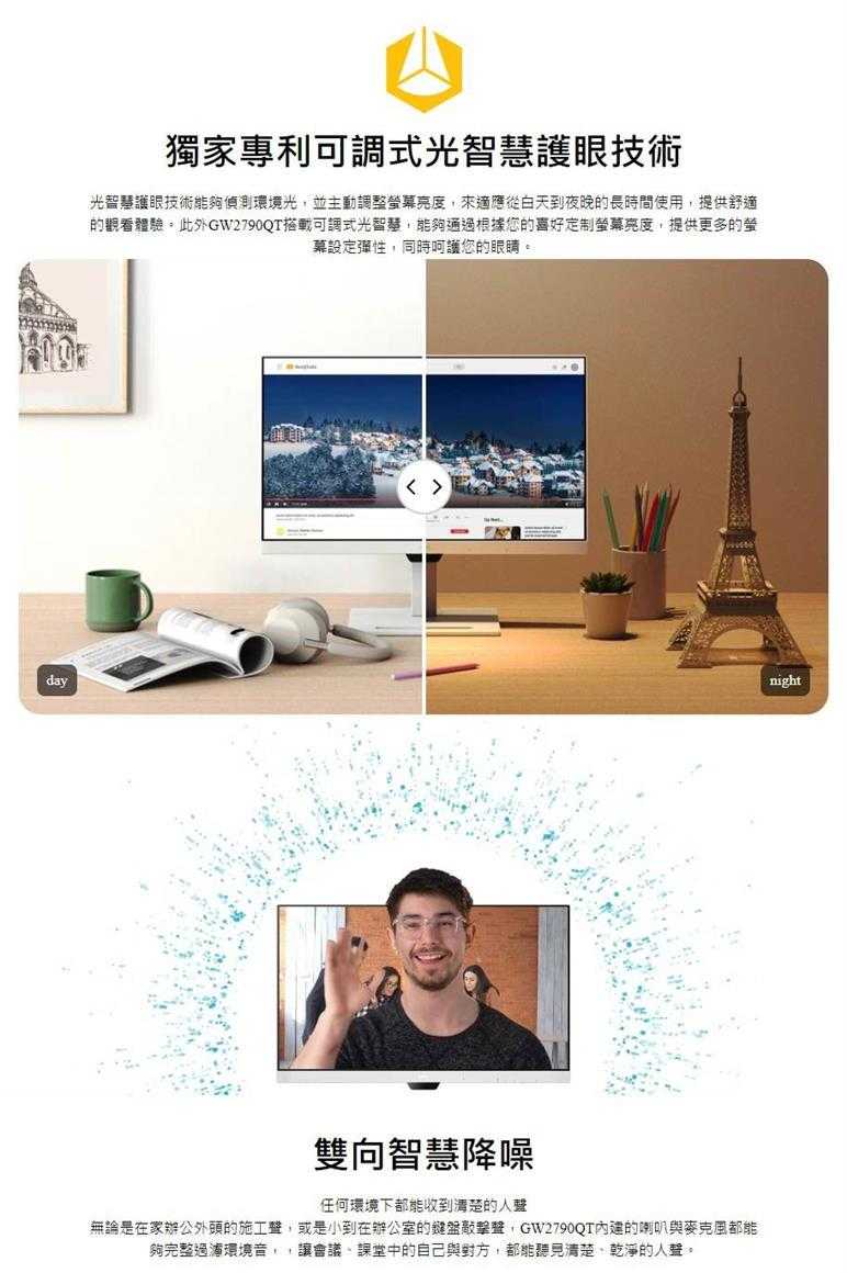 ●獨家光智慧技術,可偵測環境光源自動調整亮度