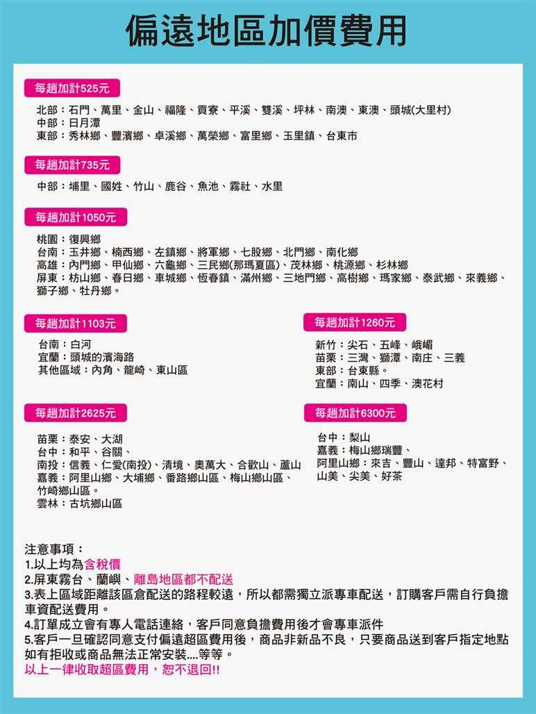 ● 下單前請詳閱「偏遠地區收費表」