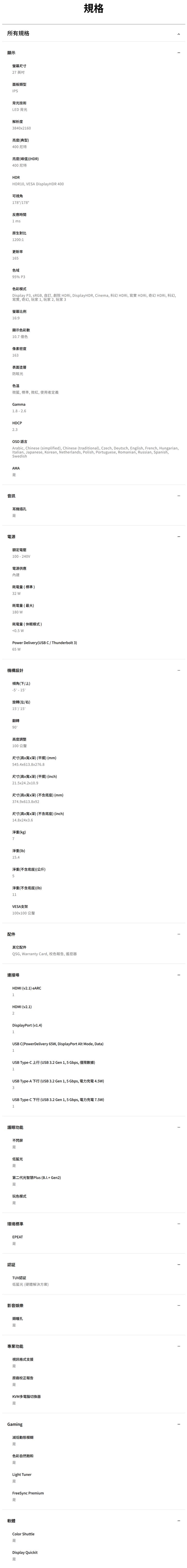 ● 面板尺寸:27吋 IPS