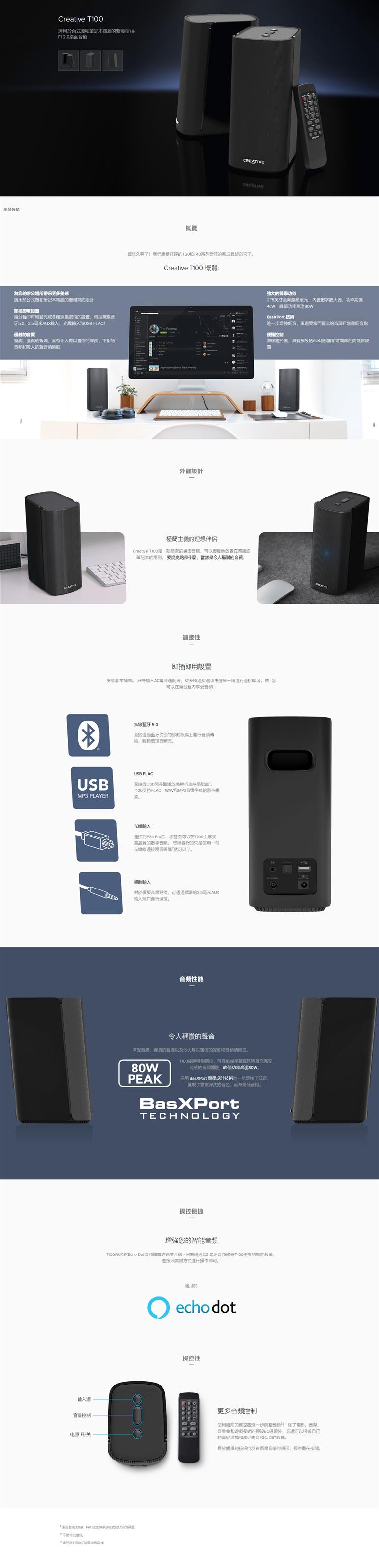 CREATIVE T100 Hi-Fi 2.0 喇叭