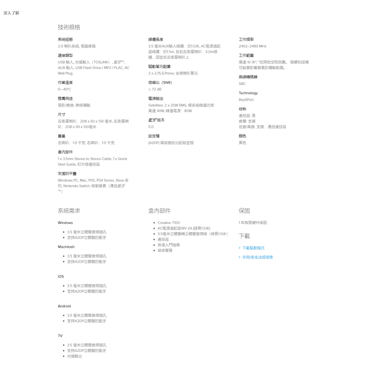 特色:支援無線藍牙5.0、3.5毫米AUX輸入、光纖輸入和USB FLAC!