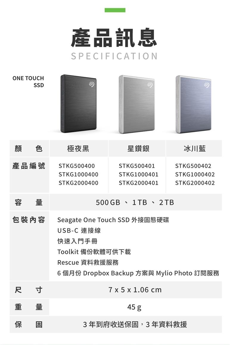 Seagate希捷 One Touch SSD 2TB 極夜黑 (STKG2000400) {{specImage.SkuName}}