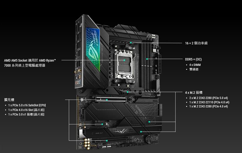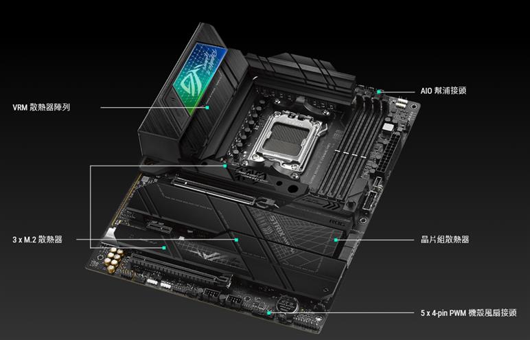 ROG Strix X670E-F Gaming WiFi 是 Strix X670E-A 低調沉穩的化身。