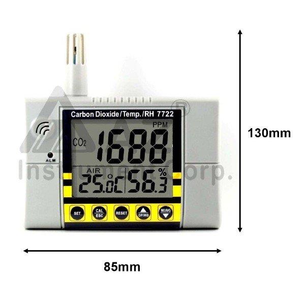 此款7722 壁掛式二氧化碳偵測計,方便讓使用者隨時注意周遭室內空氣品質變化,可於固定環境定點偵測二氧化碳,遇偵測環境超過標準設定值時,會有報警聲來提醒使用者。當然也可以變換主機的位置,偵測不同的環境。