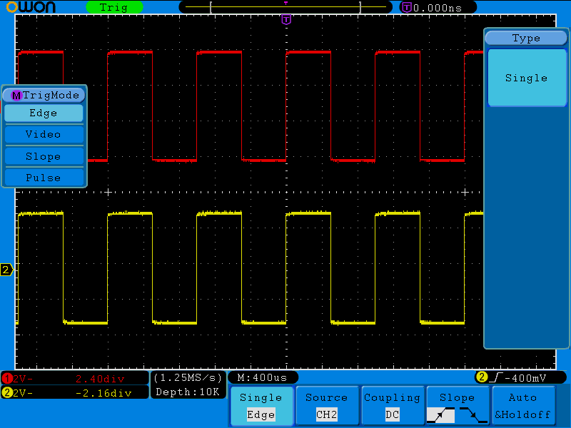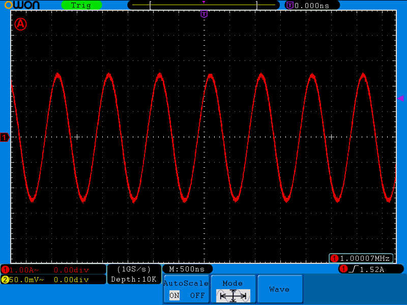 While in auto-scale status, the oscilloscope will switch to the specific trigger mode, vertical scale and timebase scale according to the type, amplitude and frequency of input signal.