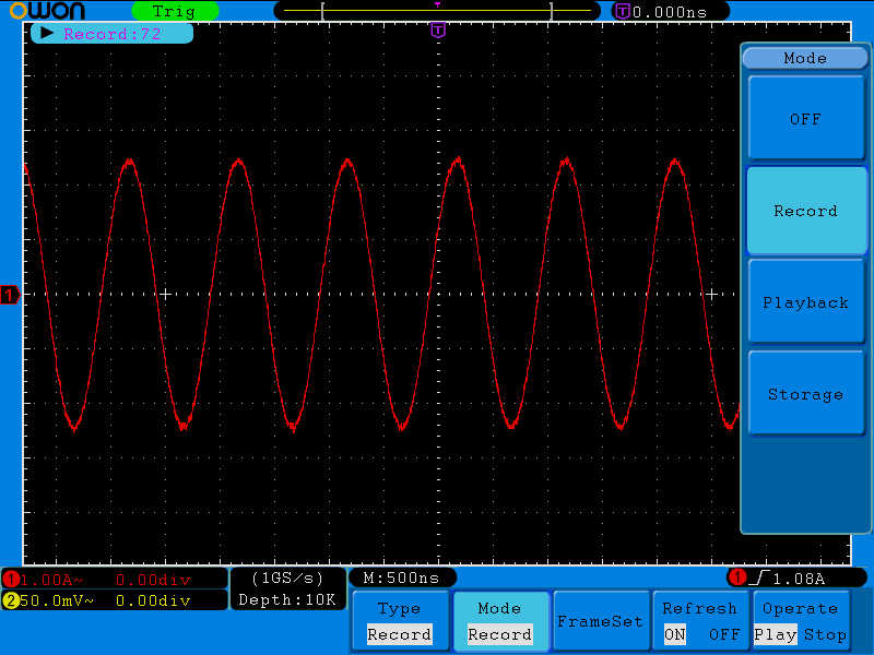 SDS series waveform record/play function support 2-channel waveform record. Moreover, Pass/Fail waveform is also able to be recorded. 1000 frames record capacity. Support waveform replay to analyzer the detail.