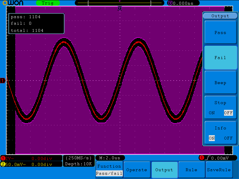 Pass/Fail function can compare the template signal edit by user (horizontal and vertical occupation) with input signal. Meet the requirement for long-term signal monitor, production monitor, filter and control.