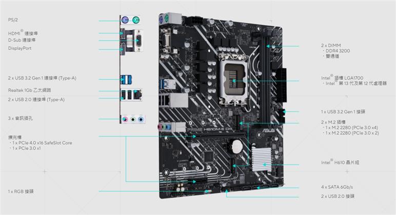 ASUS華碩 PRIME H610M-E D4-CSM 主機板