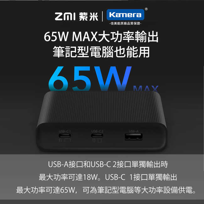● 65W大功率,支持雙快充輸出