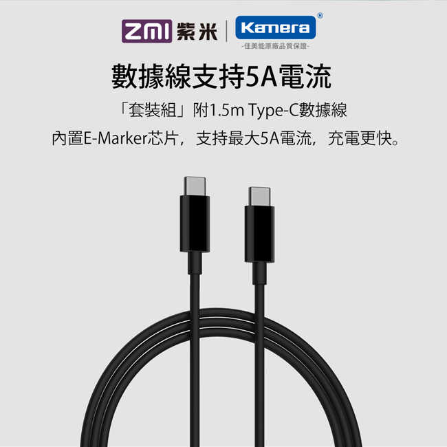● 附ZMI紫米5A eMarker 100W USB-C to USB-C 1.5M充電傳輸線
