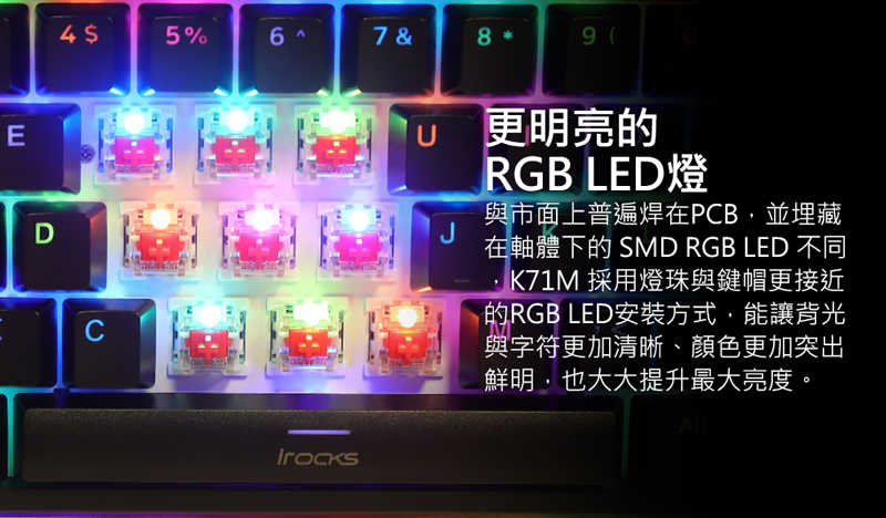 iRocks 艾芮克 K71M 黑 RGB 背光機械式鍵盤 青軸 {{specImage.SkuName}}