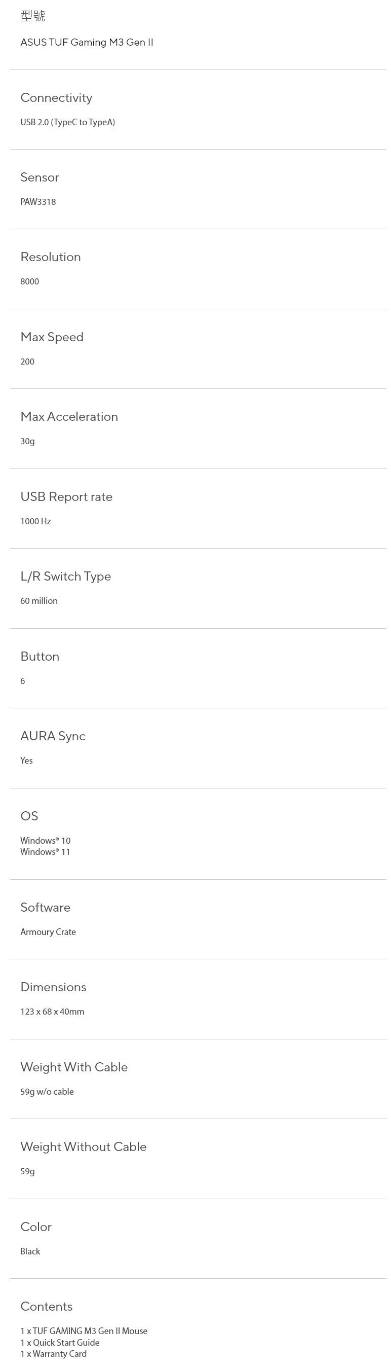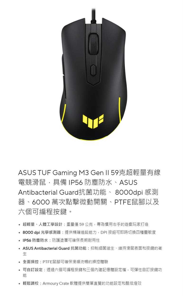 ASUS 華碩 TUF Gaming M3 Gen II RGB 電競滑鼠原價 950 (省 260) {{specImage.SkuName}}