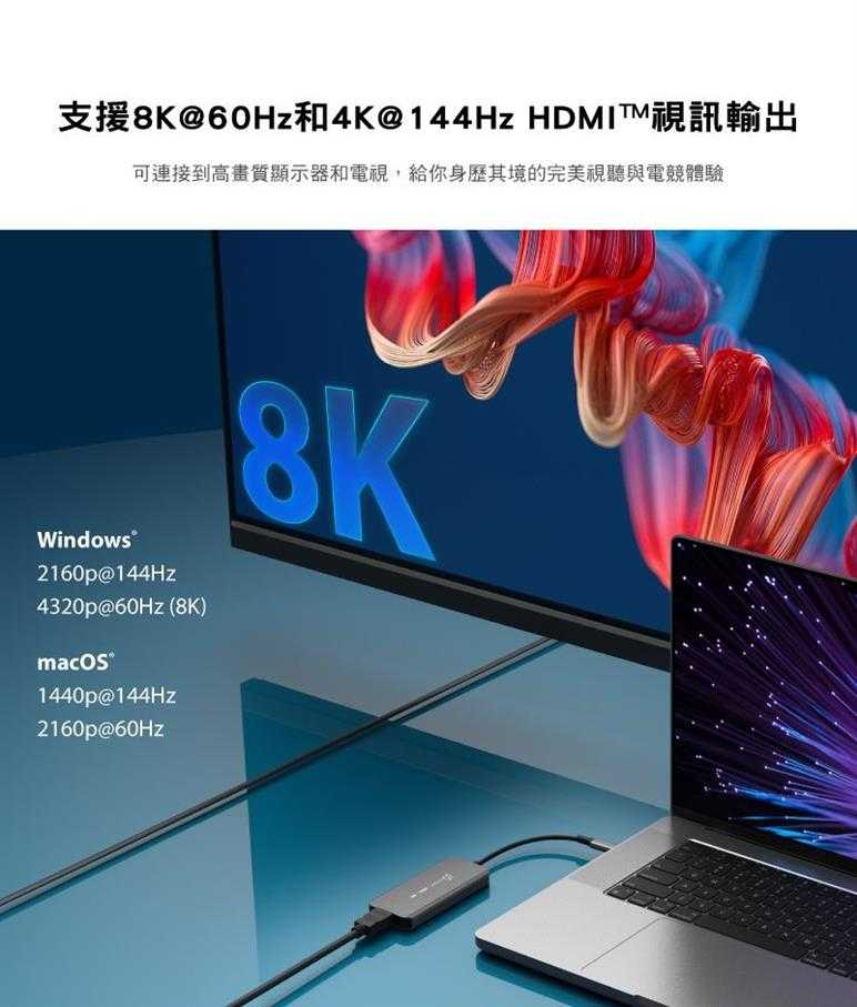 ‧ HDMI 支援8K@60Hz和4K@144Hz最高解析度