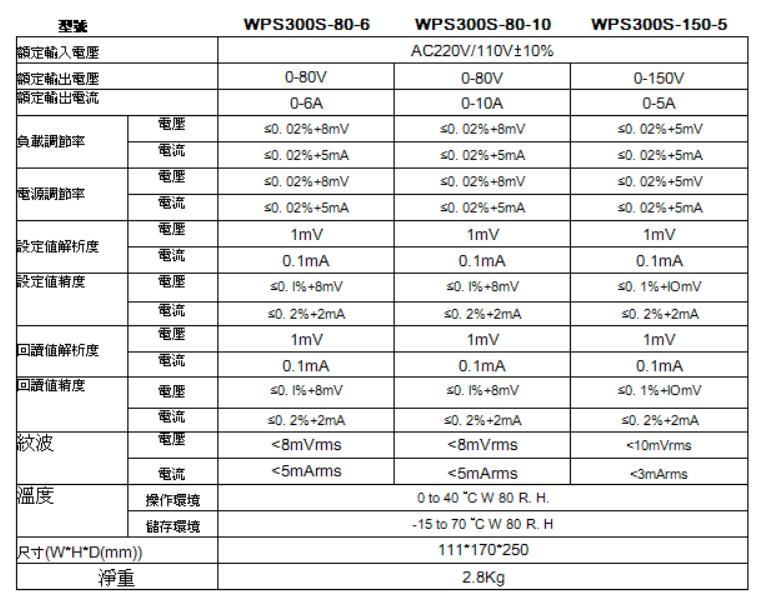 ・2個型號選擇:80/6A 80V/10A 150V/5A,額定功率300W