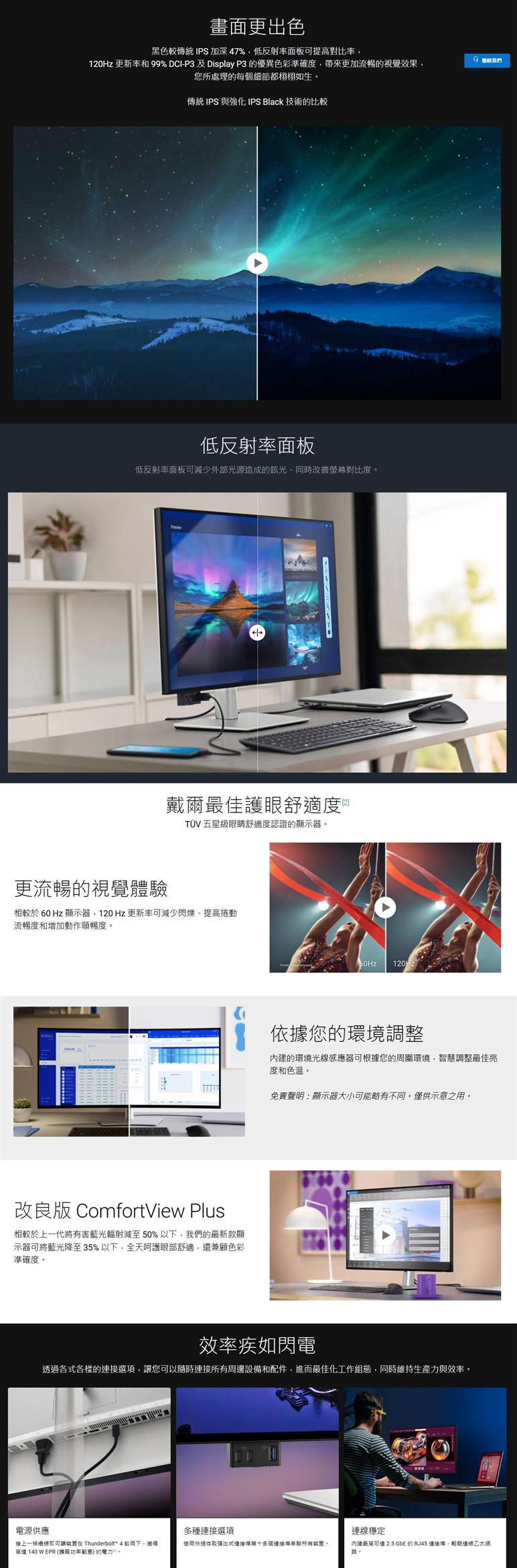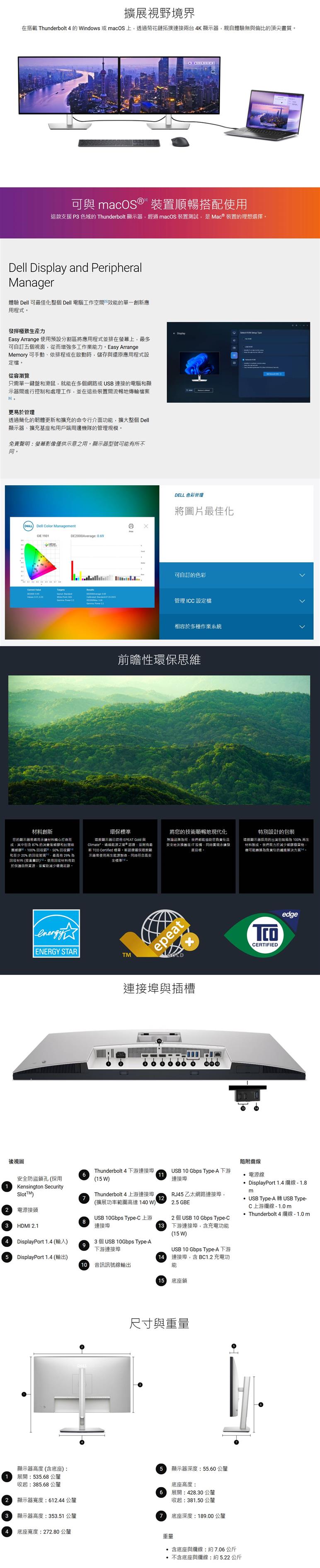 | 1 個 Thunderbolt 4 上行埠(DP1.4 (HDCP 2.2),支援 DSC,PD: 最高可達 140 W EPR,2/4 通道切換) | |