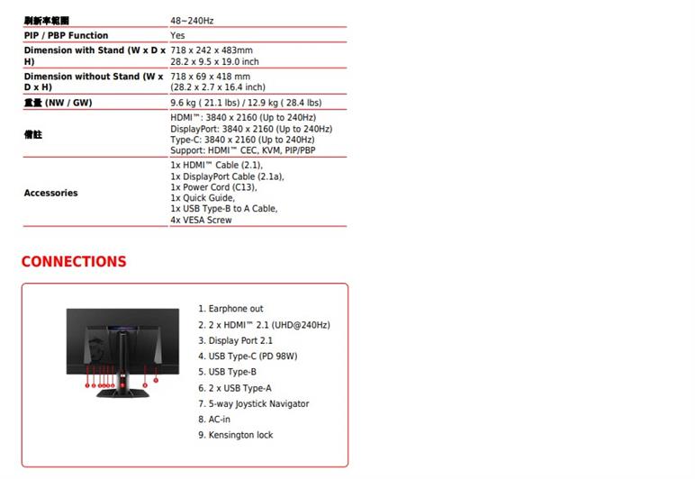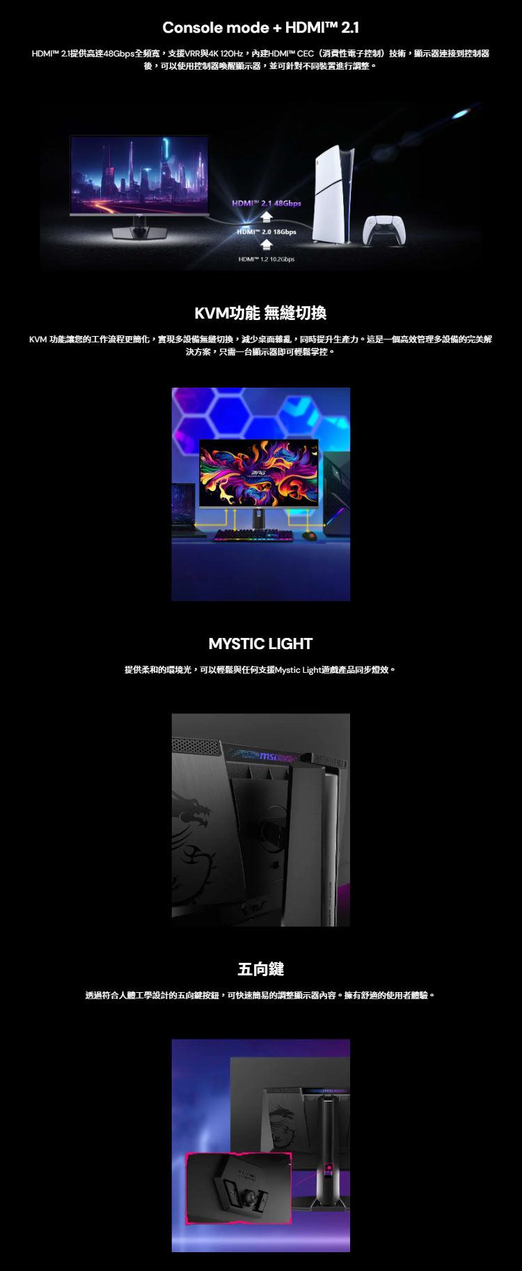 • Console Mode-提供 HDMI™ 2.1(UHD@240Hz) 以及完整的48 Gbps頻寬