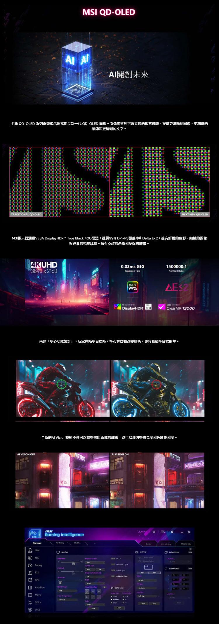 • 第三代QD-OLED面板-具有令人驚嘆的影像品質和快速反應時間