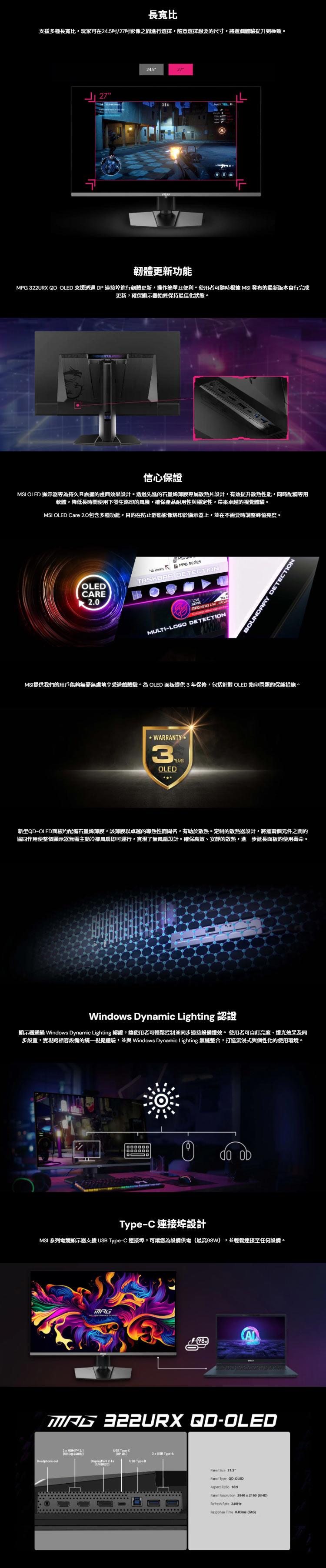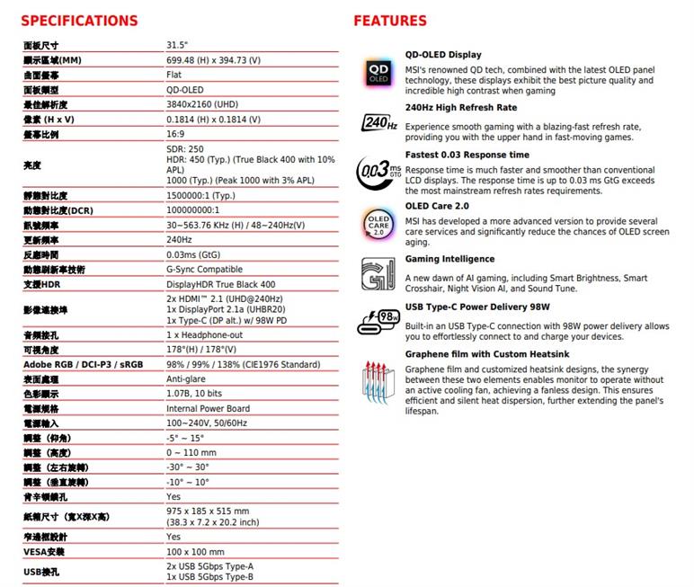 MSI微星 32型 MPG 322URX QD-OLED 4K 電競顯示器 {{specImage.SkuName}}