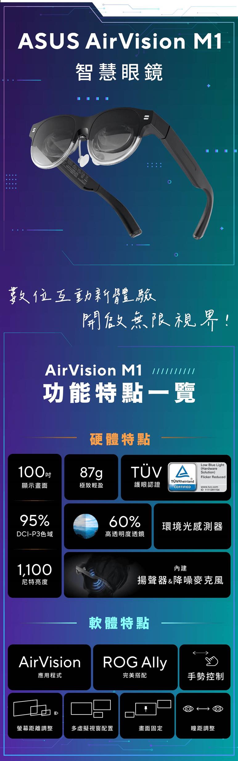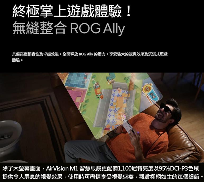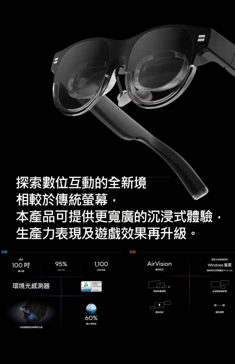 ASUS華碩 AirVision M1 智慧眼鏡 100吋穿戴式顯示器原價12990 (省3090)