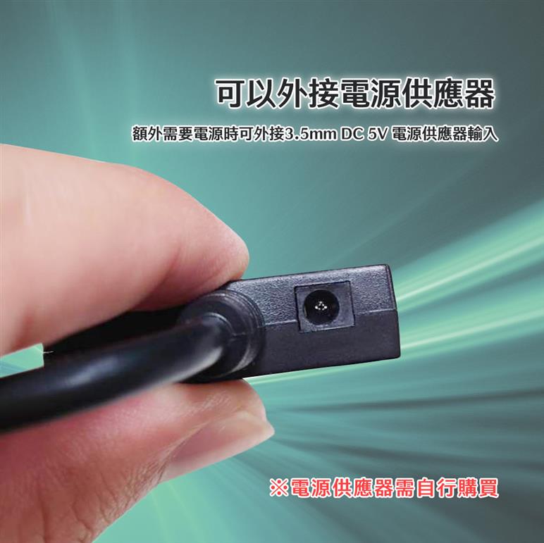 ● 額外需要電源時可外接3.5mm DC 5V 電源供應器輸入。