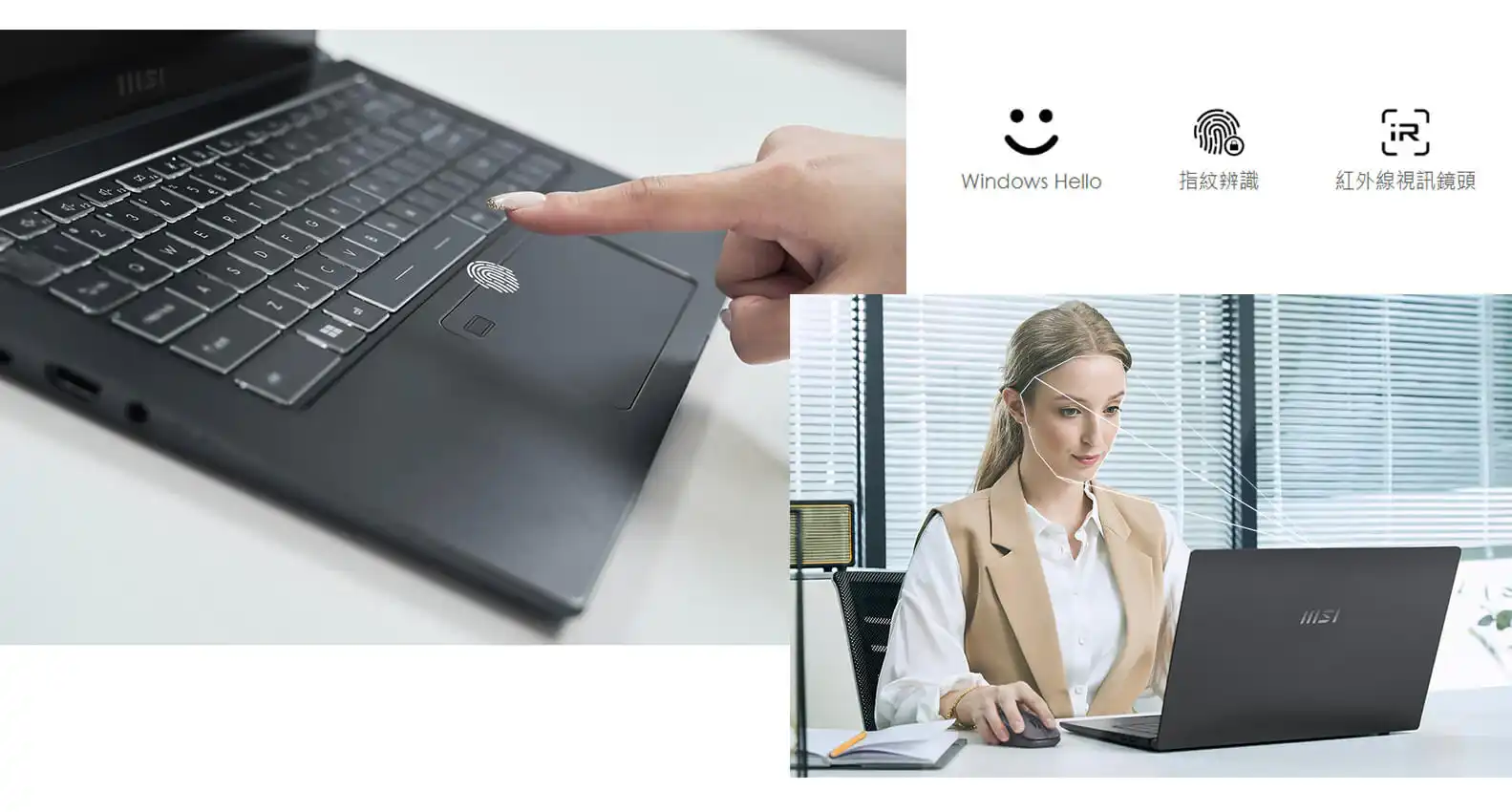 使用內建的Windows Hello,你能透過臉部辨識或指紋辨識功能快速登入筆電,使用最新的FIDO 2認證功能,輕鬆享受不需輸入密碼即可登入網路服務的便捷生活!不需擔心忘記密碼,同時也能完整保護你的資料與商業機密安全。