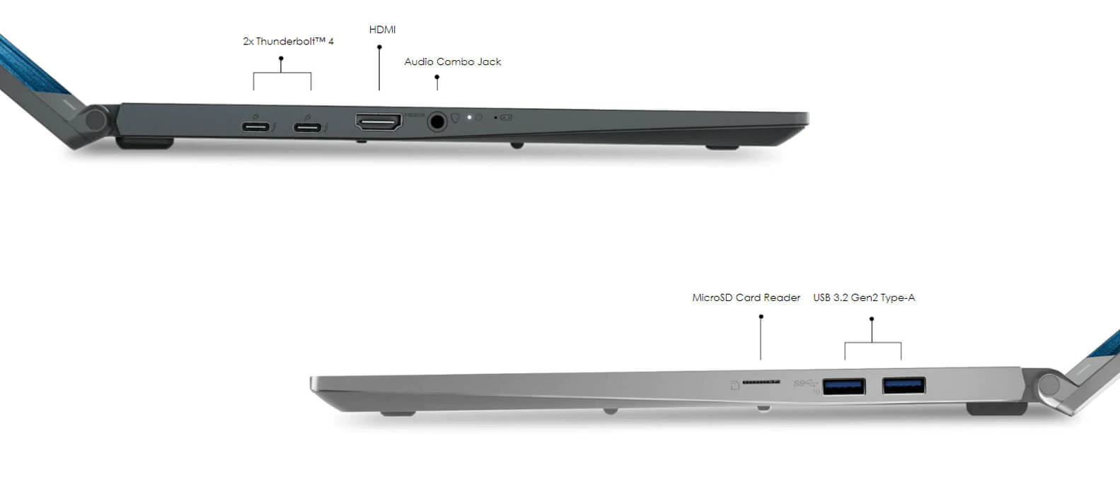 2x Type-C (USB / DP / Thunderbolt™ 4) with PD charging 2x Type-A USB3.2 Gen2 1x Micro SD Card Reader 1x (4K @ 60Hz) HDMI |