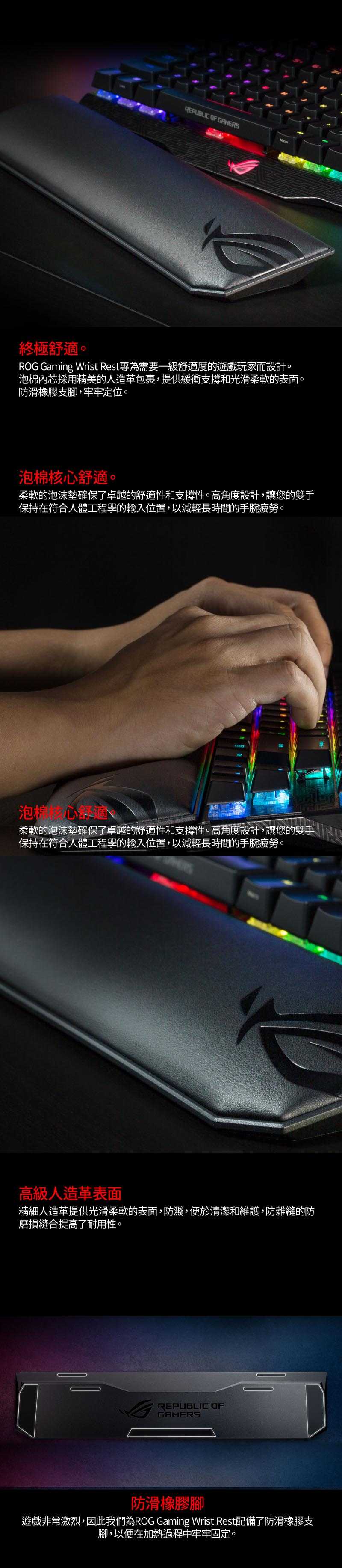 ●頂級的柔軟泡棉腕墊以人體工學角度提供緩衝支撐,讓玩家可以長時間舒適地進行遊戲