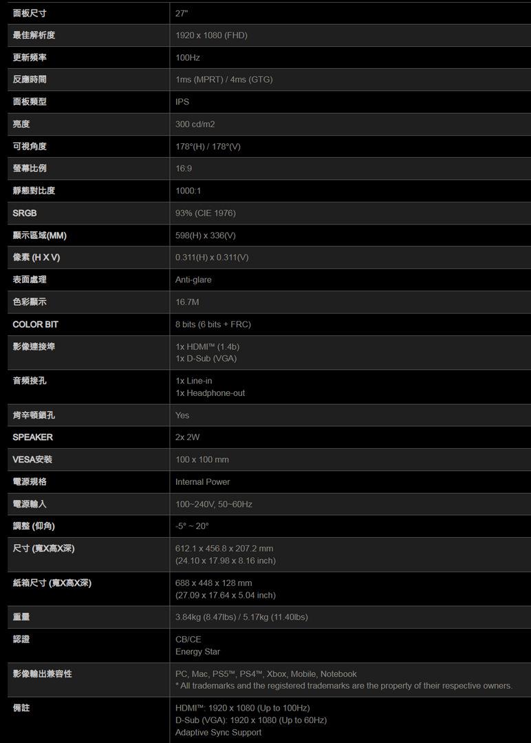 ● 反應時間:1ms (MPRT) / 4ms (GTG)
