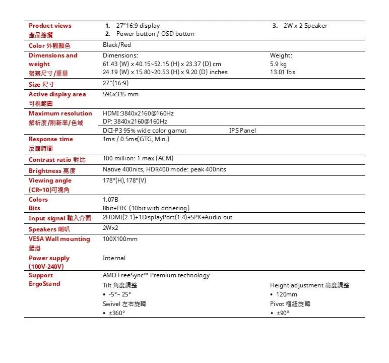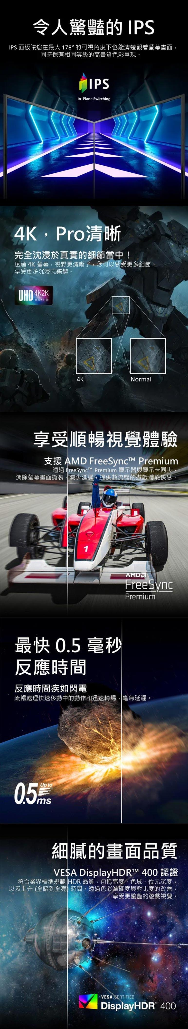 ● HDR支援:VESA DisplayHDR 400