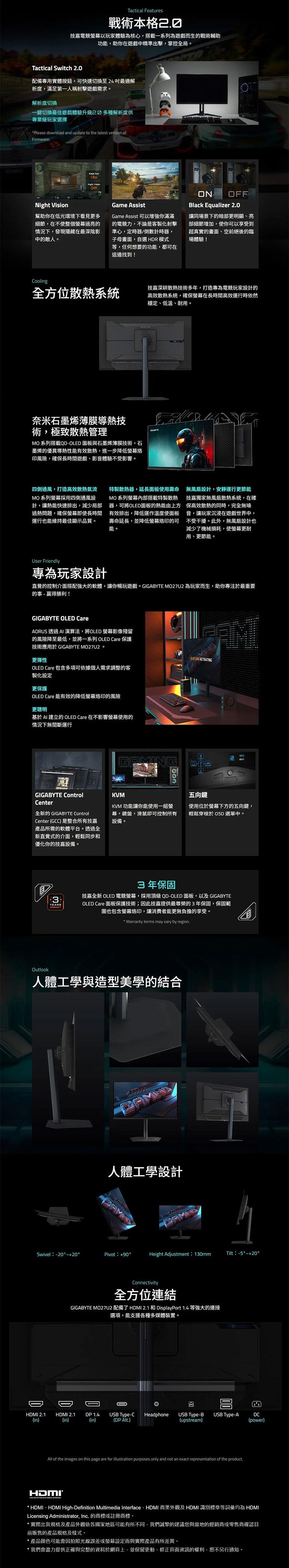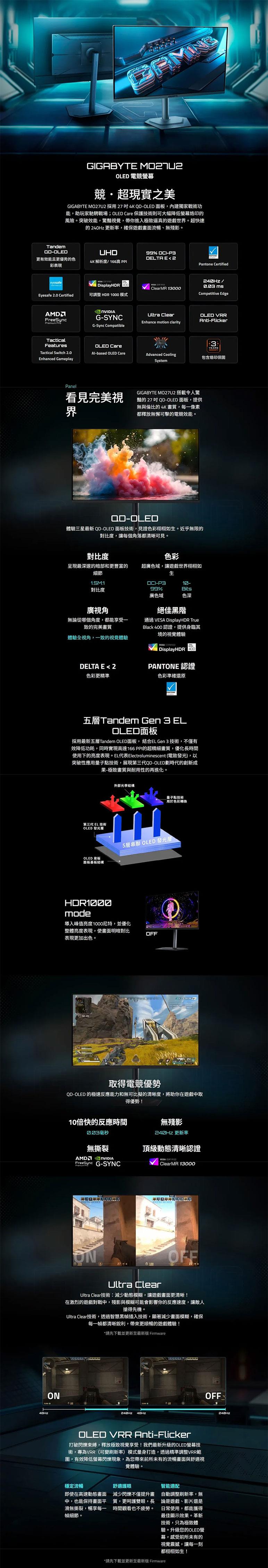 技嘉GIGABYTE 27型 MO27U2 QD-OLED 平面電競螢幕 {{specImage.SkuName}}
