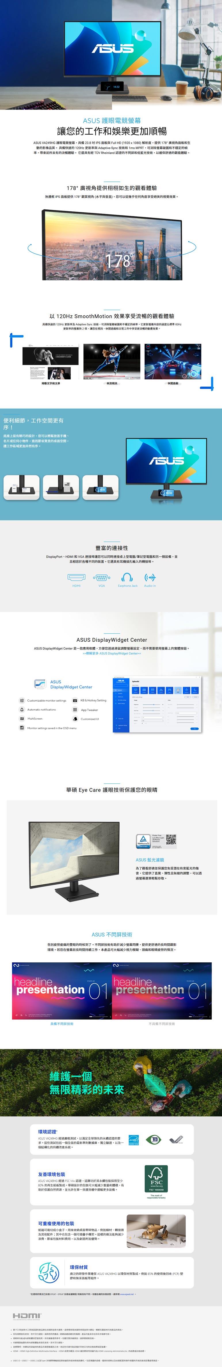 ● TUV Rheinland 認證的不閃屏和低藍光技術,確保舒適的觀看體驗