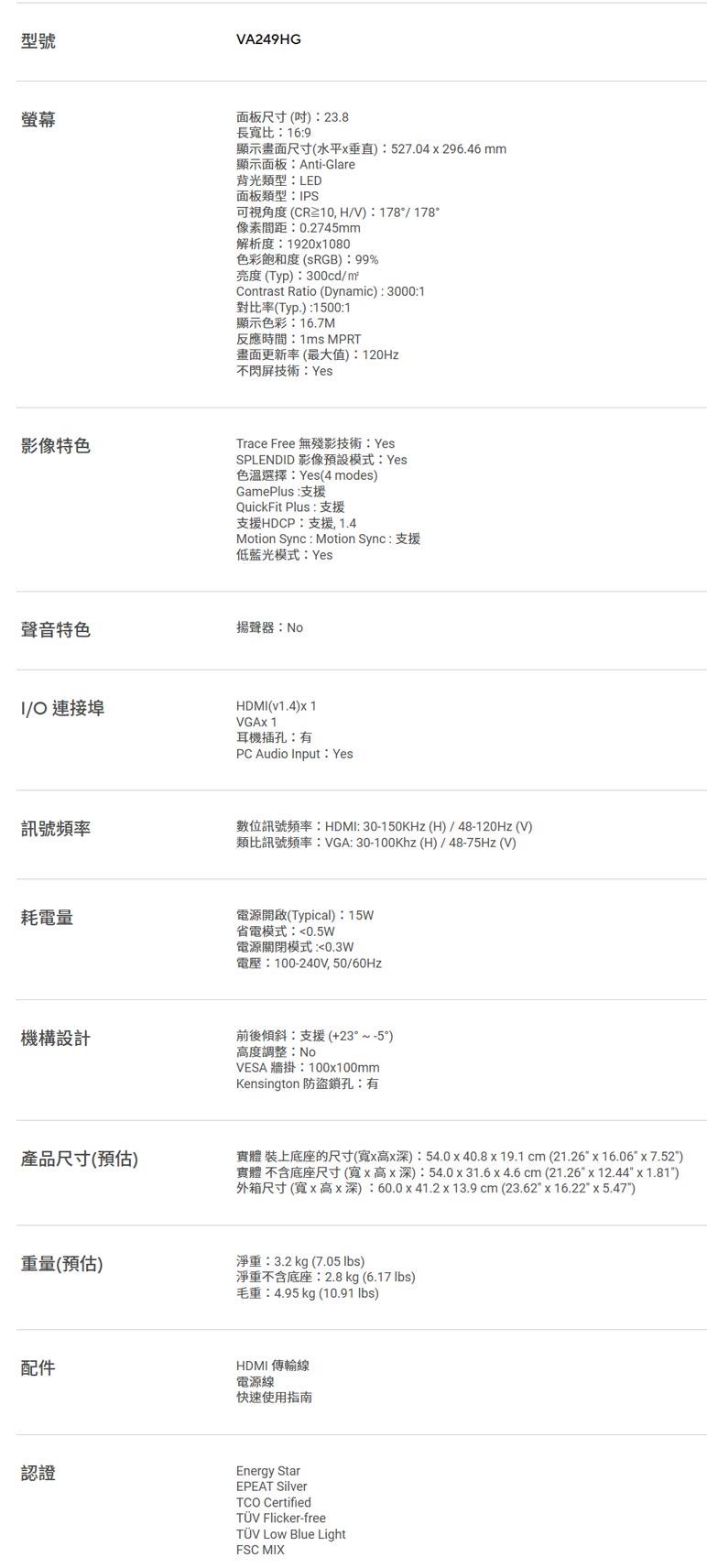 ● 面板尺寸:23.8吋 IPS面板