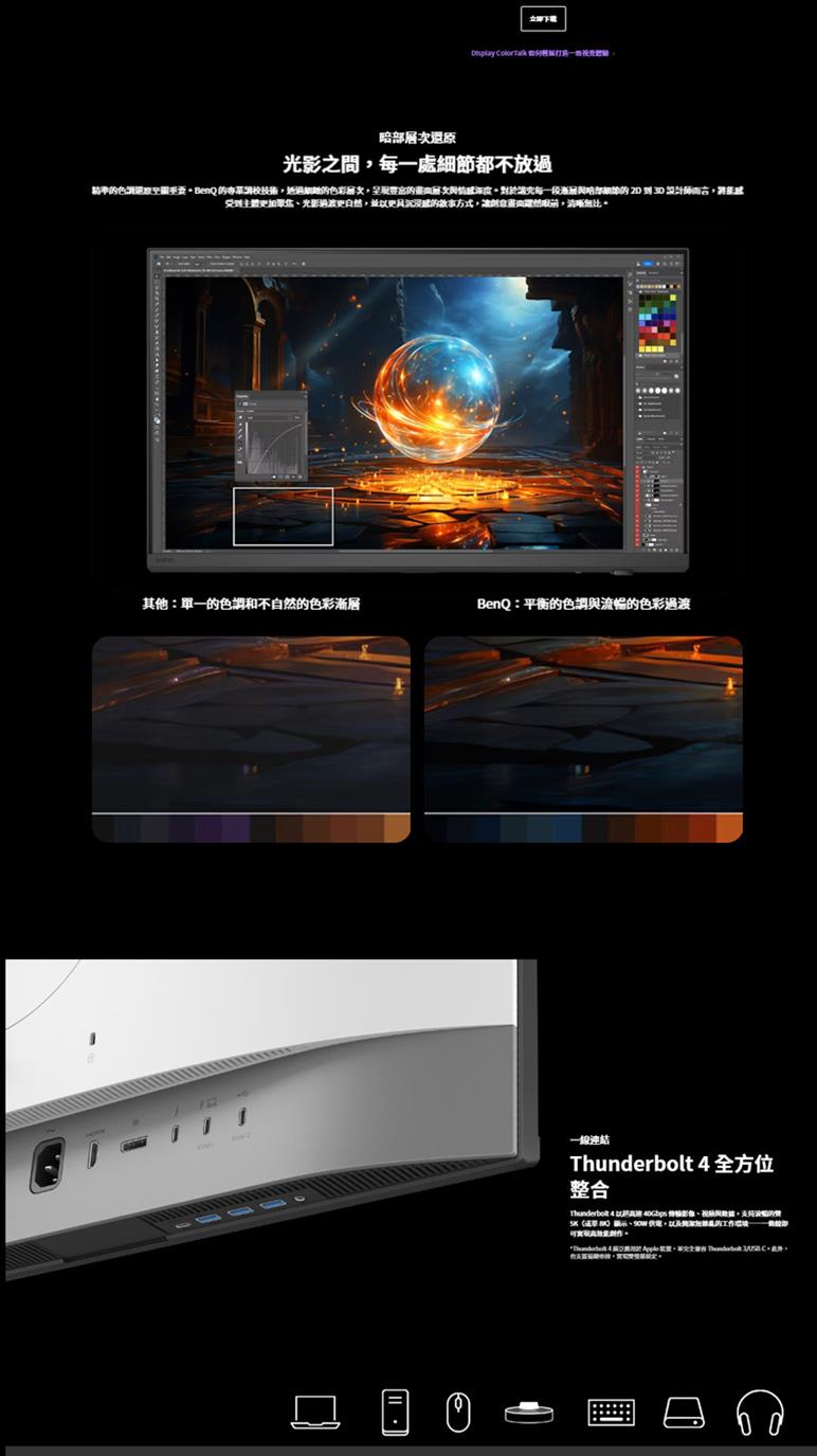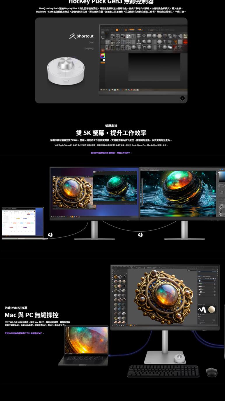 | USB-A 下行 | 3(10Gbps, 4.5W) | 其他配件 | QSG、保固卡、校色報告、Hotkey Puck G3 |