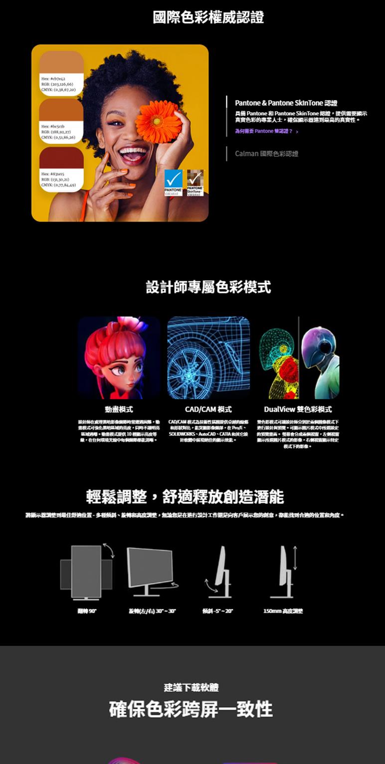『細』專業色彩與細節:領先業界均勻度、灰階管理與獨家校色軟體