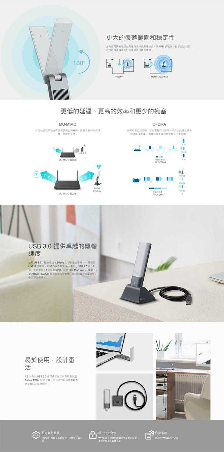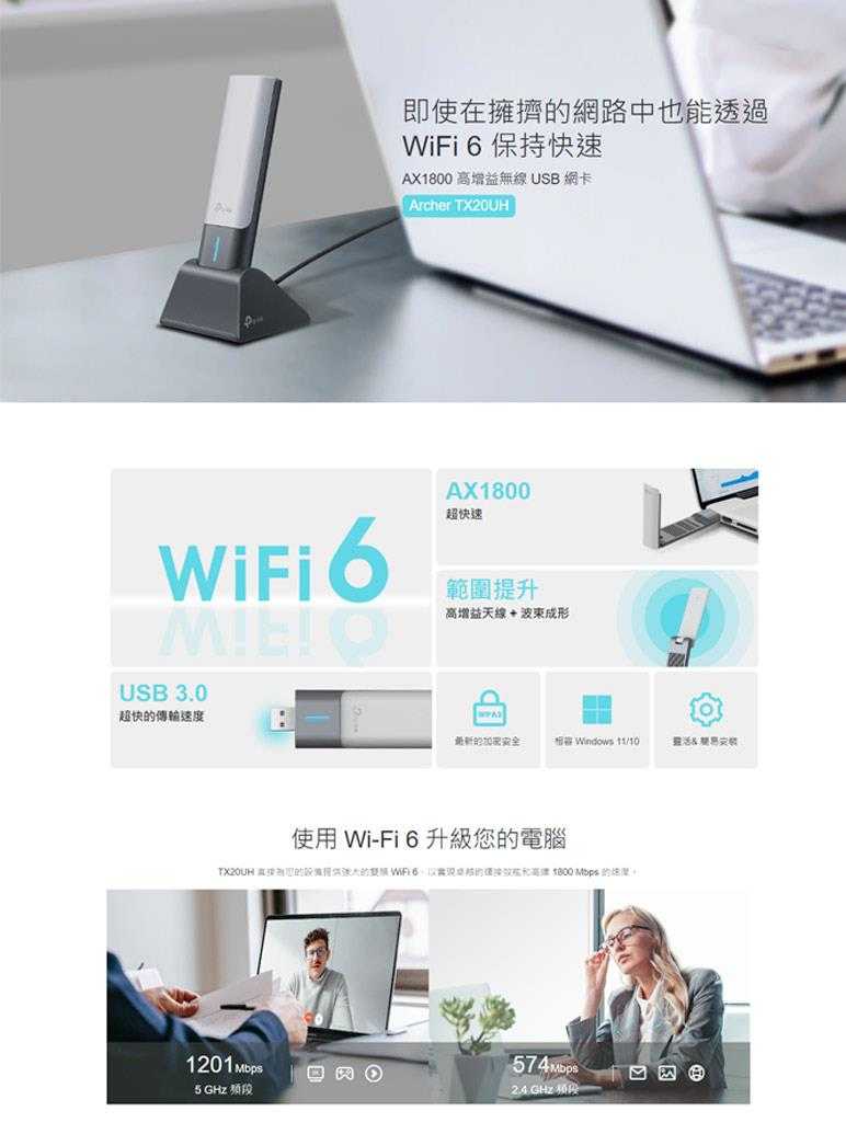- 高速 WiFi 6 - 以高達 1201 Mbps (5 GHz) + 574 Mbps (2.4 GHz) 的速度打破 Gigabit 障礙。